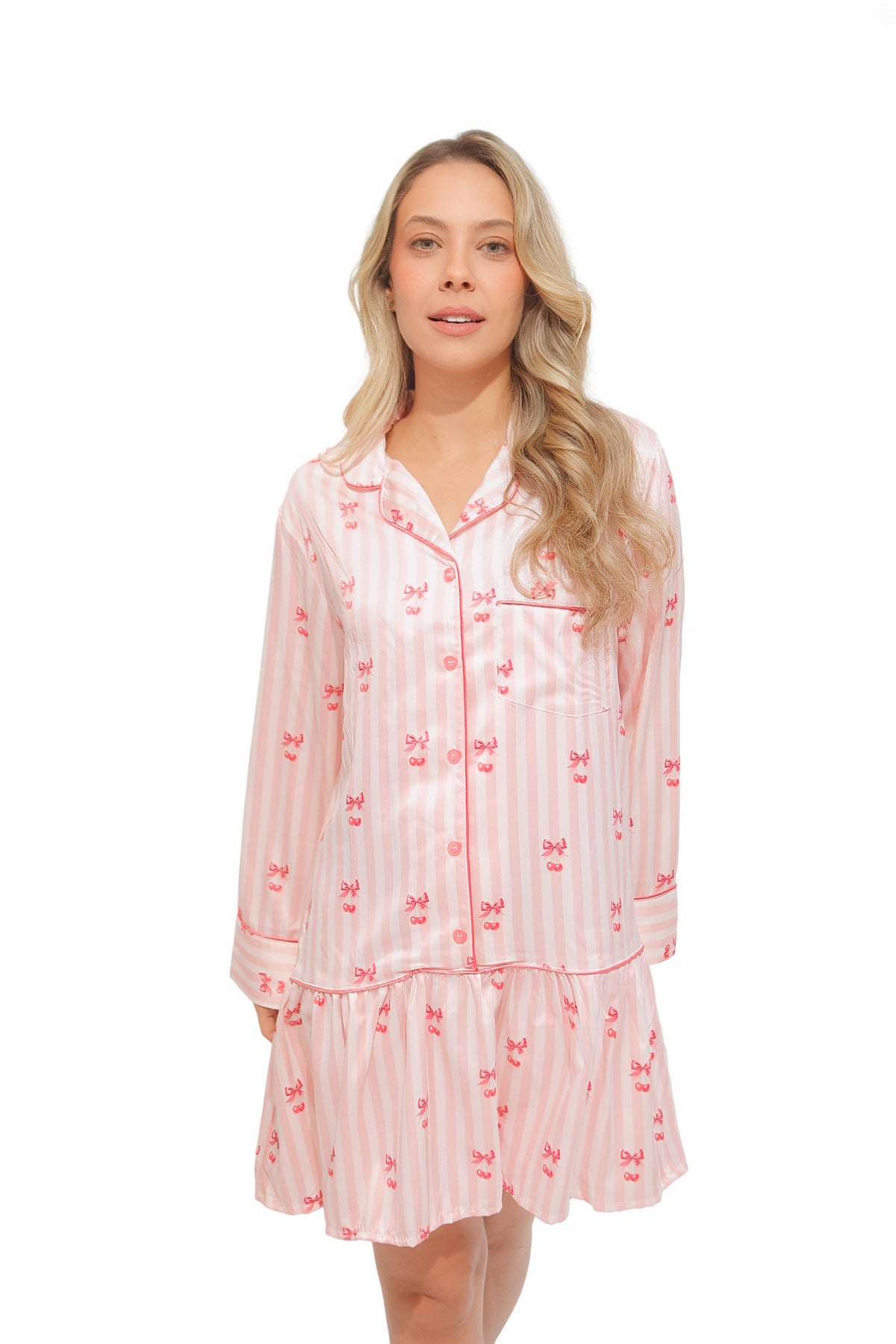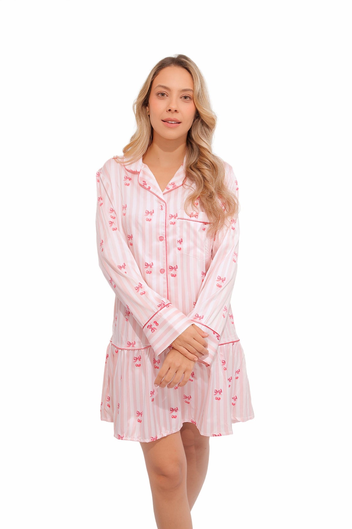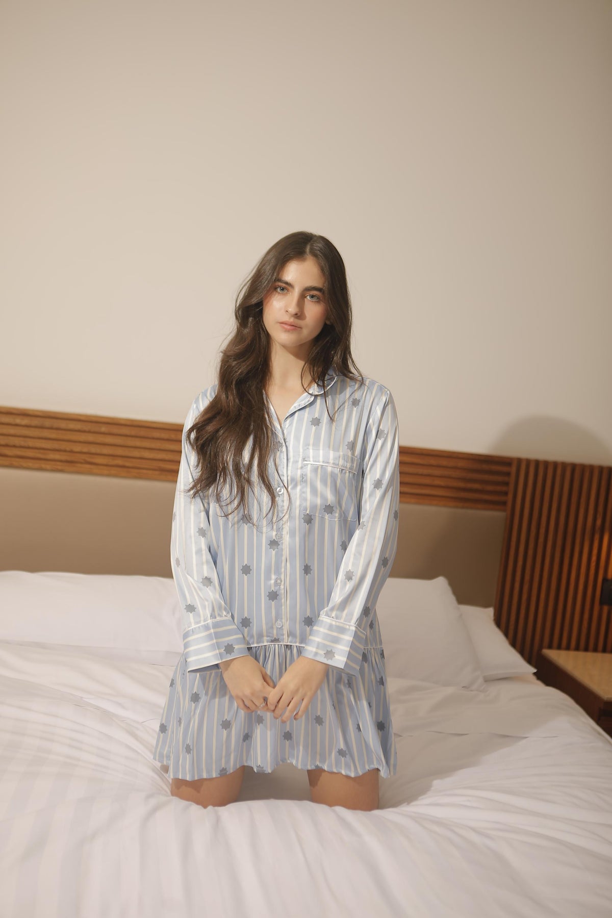 Vestido camisero con caída fluida y detalle de arandela inferior que aporta movimiento y un toque femenino. Su silueta ligera y elegante lo hace ideal para relajarse o para un look cómodo en casa.