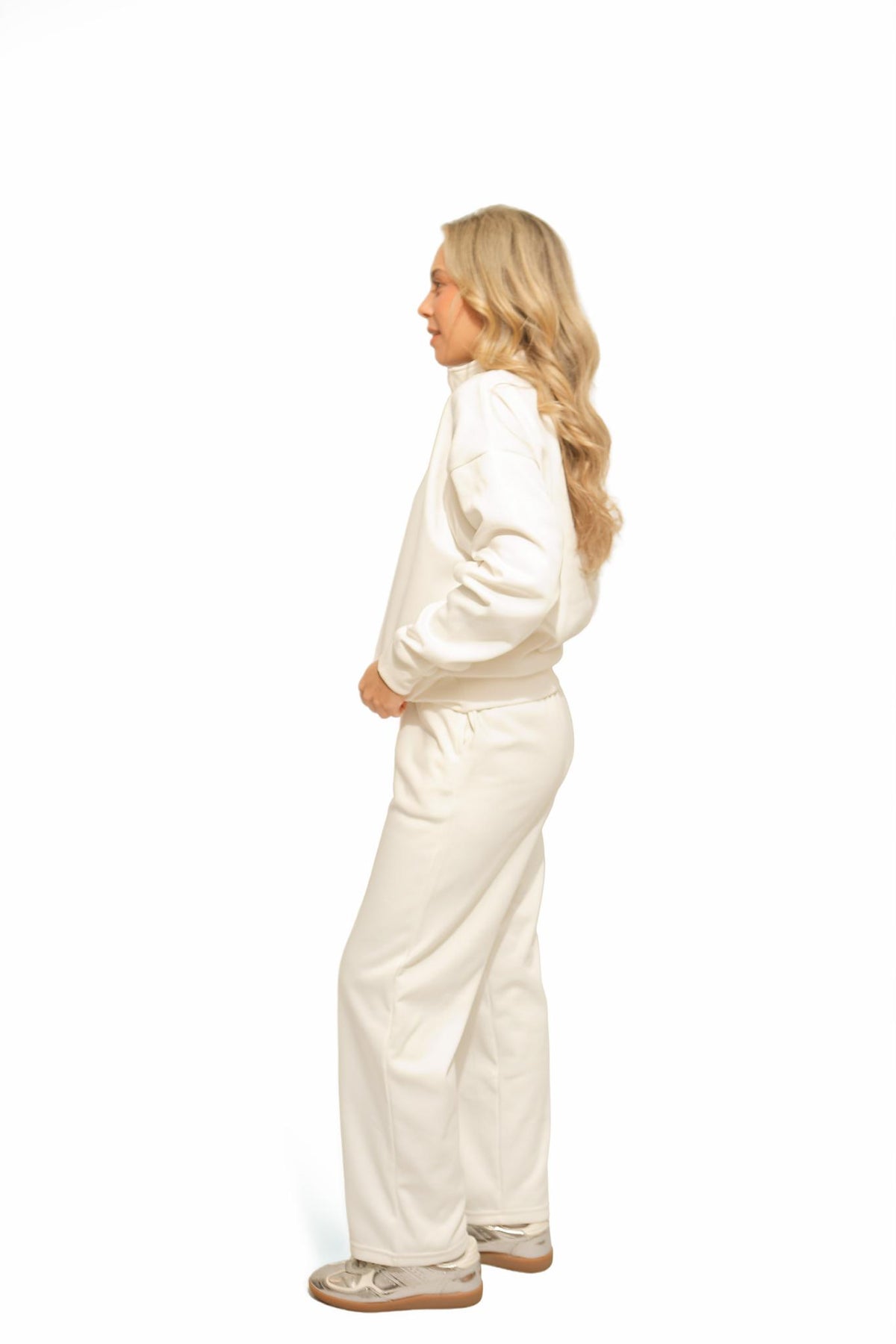 Set en tejido perchado con suéter de cuello alto, zipper metalizado en frente. Pantalón con bolsillos laterales y cintura elástica que mantiene la comodidad en todas tus actividades. Su interior suave y su silueta relajada brindan una sensación cálida y acogedora, ideal para elevar la comodidad en tu rutina diaria. Perfecto para un look cozy, para viajar o para salir con un estilo relajado y moderno.